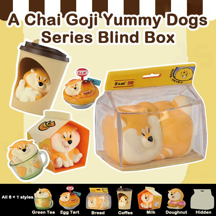 Indulge in cuteness overload with A Chai Goji Yummy Dogs Series Blind Box! Each sealed box holds a delightful surprise—a randomly selected dog figure inspired by scrumptious food.